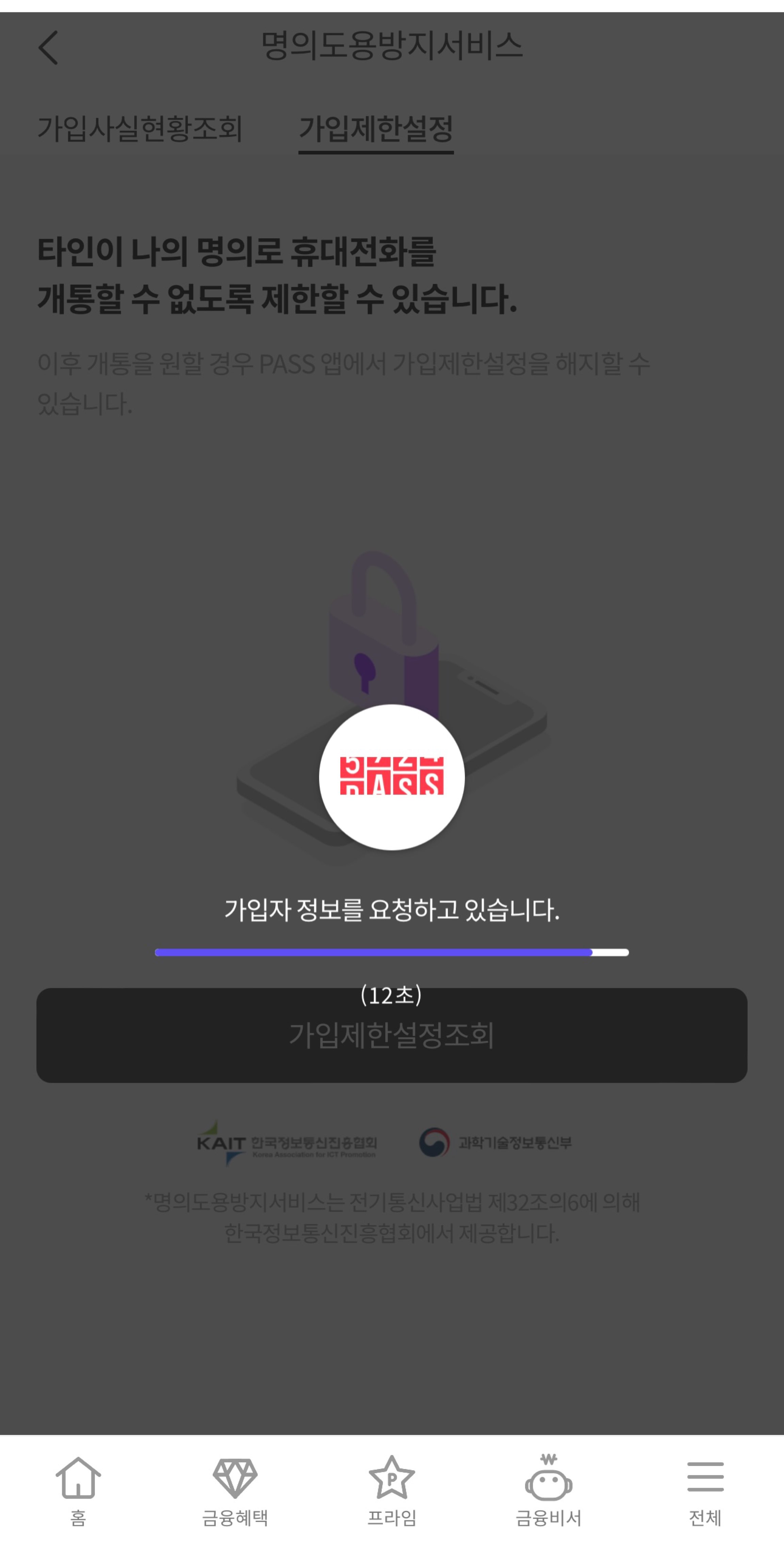 보이스피싱 방지 PASS에서 휴대폰 가입제한 하는법